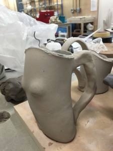 So glad my first slip cast mugs have survived the first firing. The handle is supposed to suggest an ear shape. I’m thinking about doing some kind of eye or face screen-print decoration on one of them in the coming weeks.