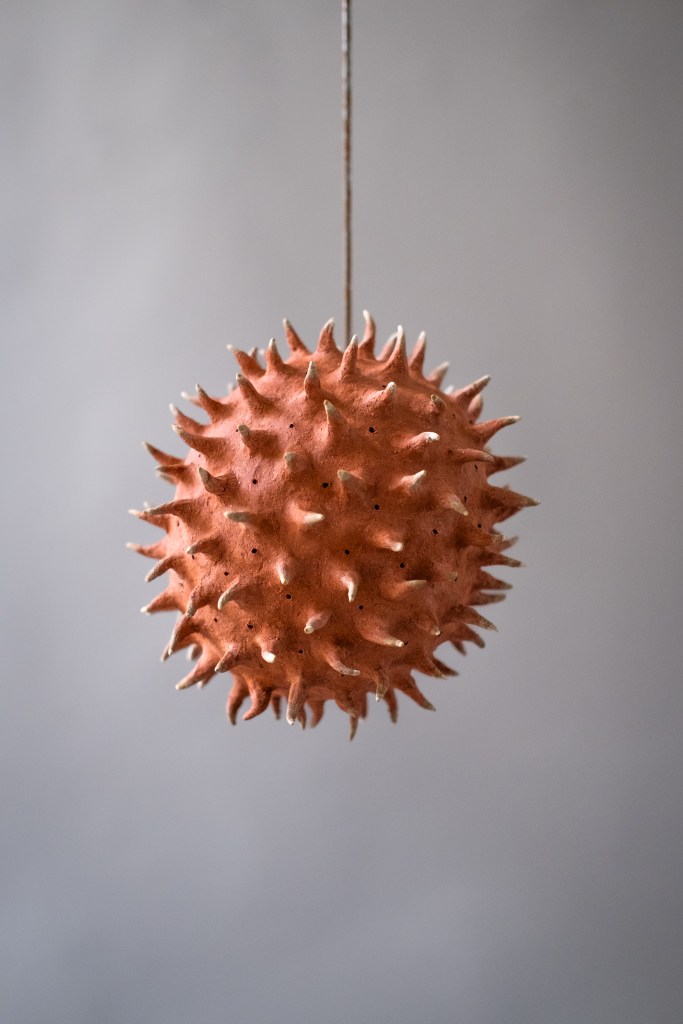 The ceramic elements are inspired by an extinct fungi, Potteromyces. Recently discovered in the Natural History Museum’s fossil collection by Dr Strullu-Derrien, this extinct fungi was named after Beatrix Potter, who, though famous for her children’s books, was also a renown mycologist in her day. Playing with scale, a ceramic fossil of Potteromyces, teeters above a terracotta fungal spore, which is counterbalanced by a three dimensional version of the fungi. Putting these ceramic elements in motion, brings them to life, whispering of the cycle of life, reminding us of their and our fragile place in the solar system.