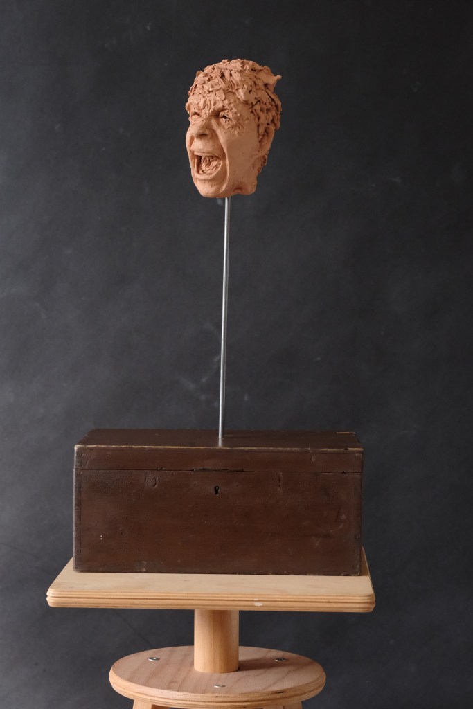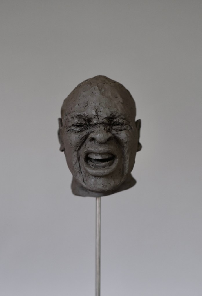 This series of heads has been sculpted from mugshots of volunteers who sent me reference photos of themselves taken during lock down, capturing their frustration and anger during 2020. Spiked on rods like decapitated protestors the work speaks to the UK government’s curbs on citizen’s legitimate right to protest.